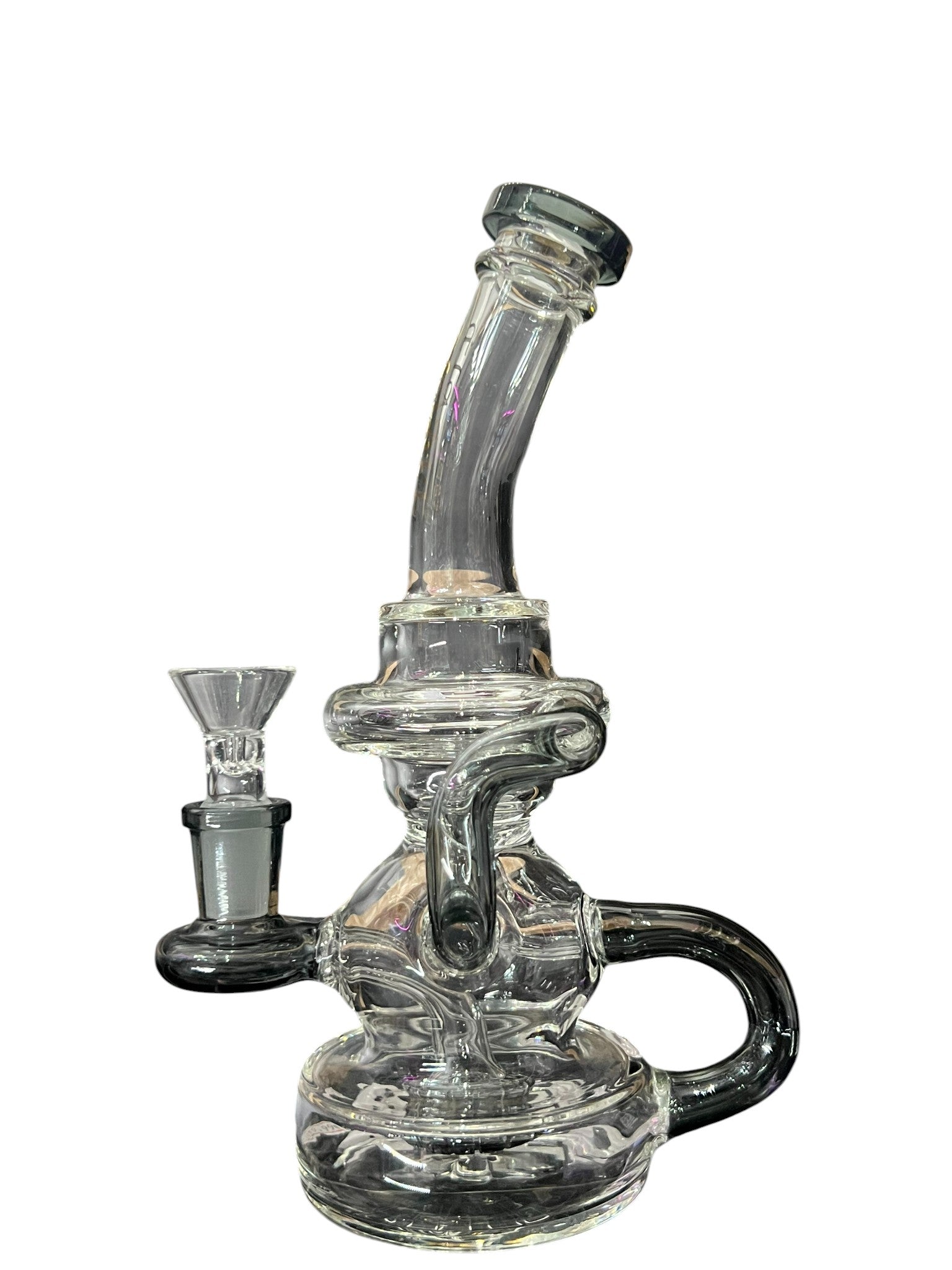 Experience smooth and efficient smoking with our 8.5 Inch Perc Recycler Three Chamber Stem. This high-quality glass piece features three chambers that work together to filter and cool your smoke, providing a clean and enjoyable hit every time.