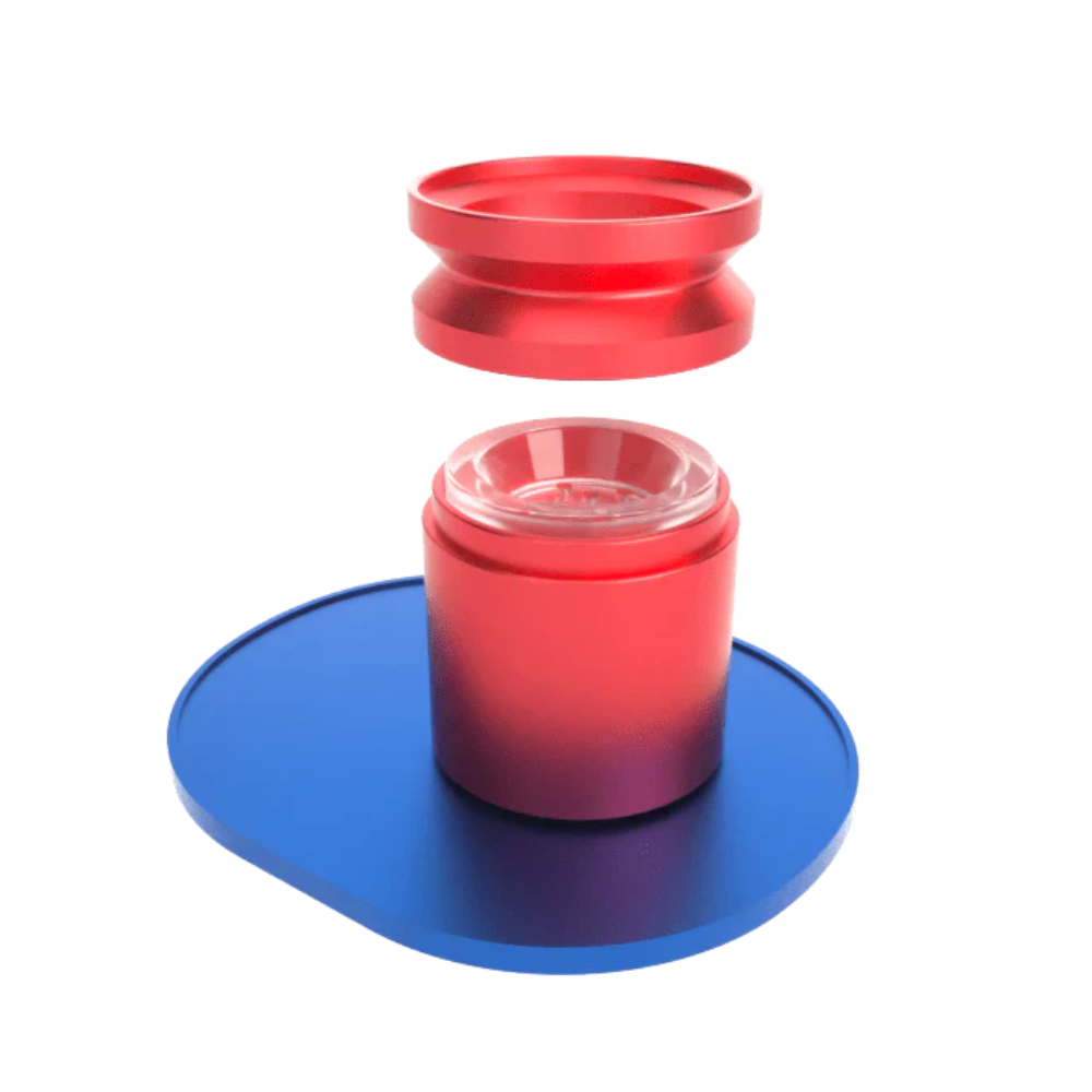- 360° rotating glass infuser with kinetic motion activation.